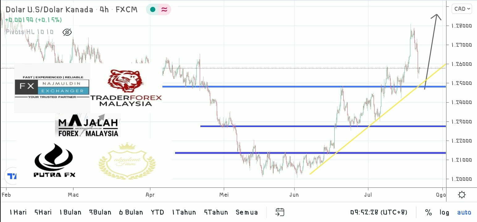 UsdCad di TimeFrame H4. Harga asal nya dalam kedudukan Downtrend.Namun bermula pada…
