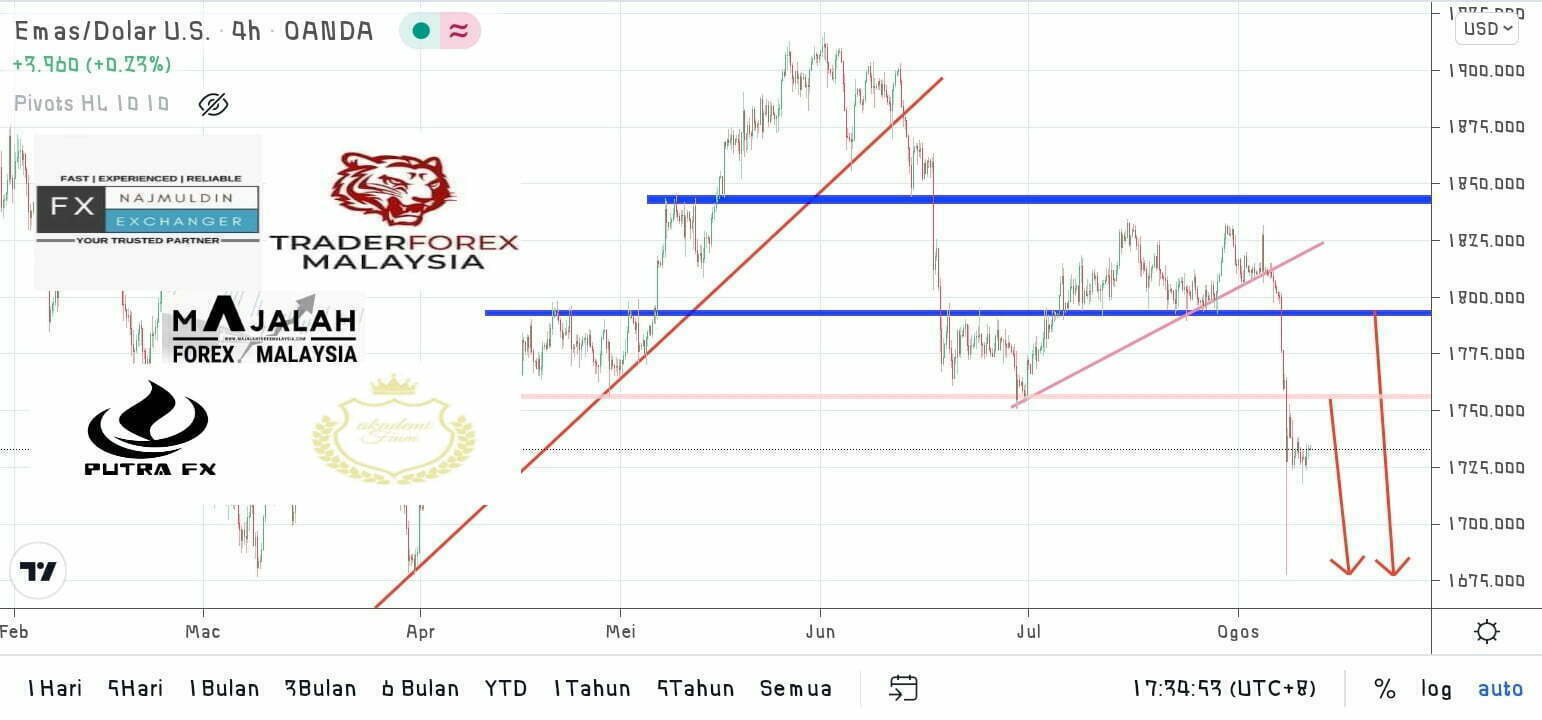 Gold di TimeFrame H4 Harga masih lagi dalam kedudukan Downtrend.Saya menjangka kan…