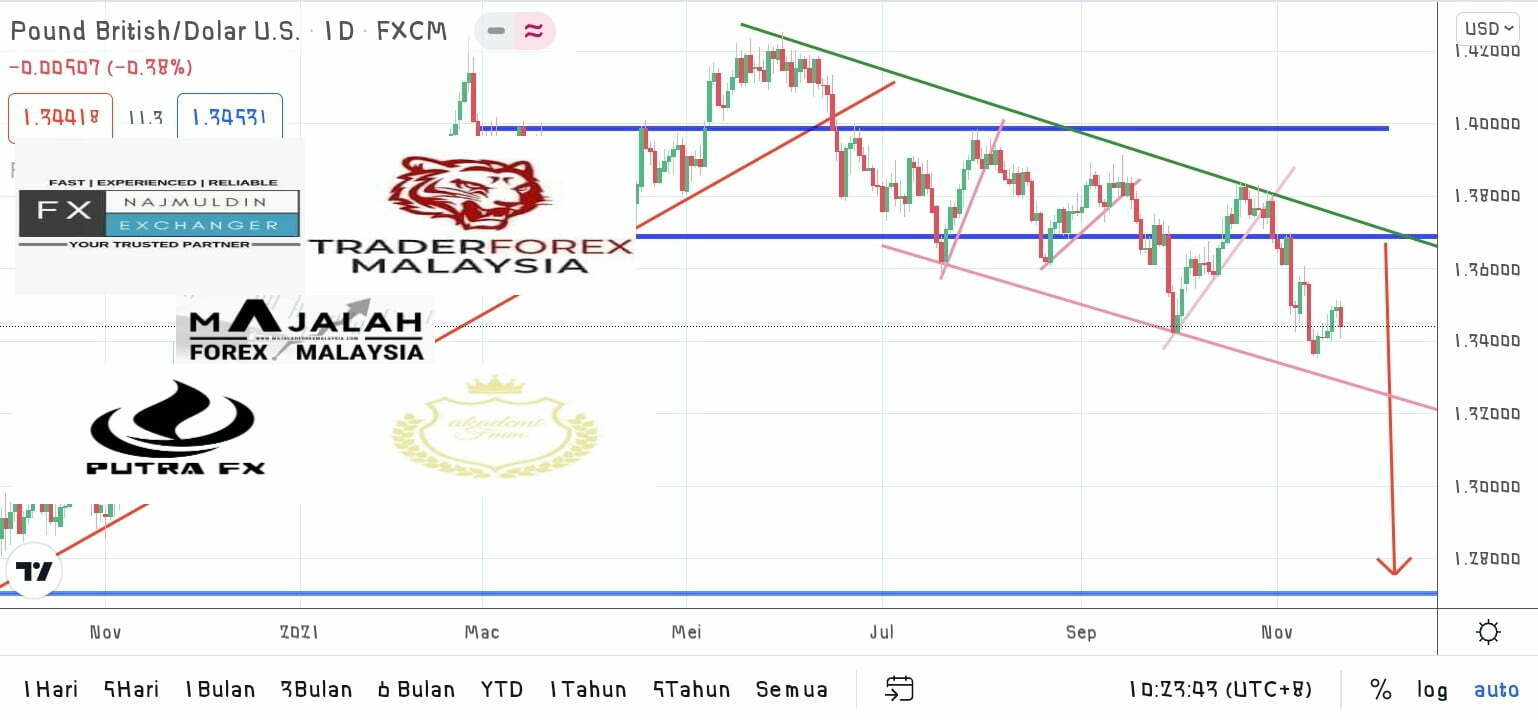 Analisa Teknikal gbpusd 21 nov 2021 GbpUsd di TimeFrame Daily ( D1…