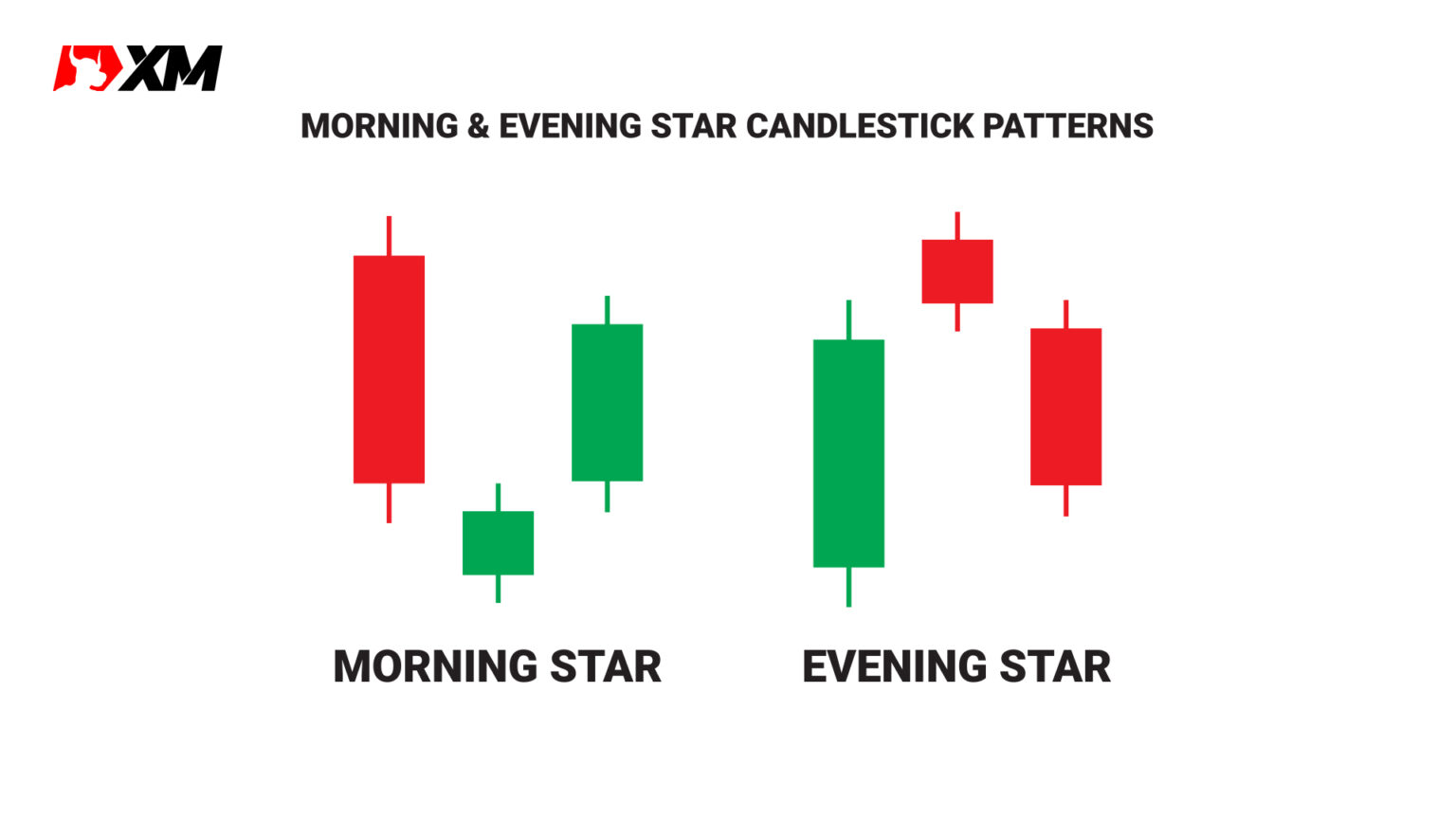 Morning Star dan Evening Star adalah corak melibatkan tiga candlestick yang membawa cerita tentang perubahan arah pasaran yang akan berlaku. Morning Star menandakan peluang untuk membeli, manakala Evening Star memberi petunjuk untuk menjual.