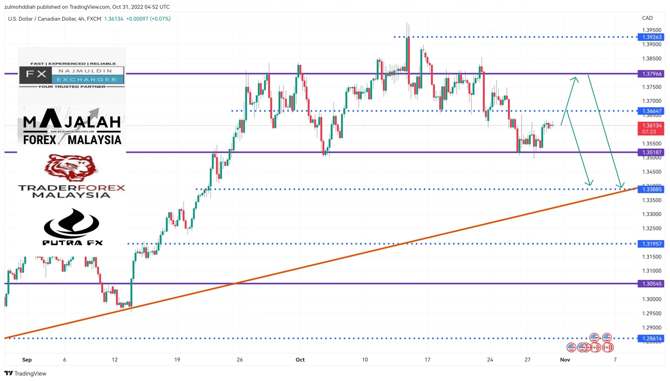 UsdCad di Timeframe H4. Forecast: Harga secara keseluruhannya masih lagi dalam kedudukan Uptrend. Ketika ini harga sedang membuat sideways untuk…