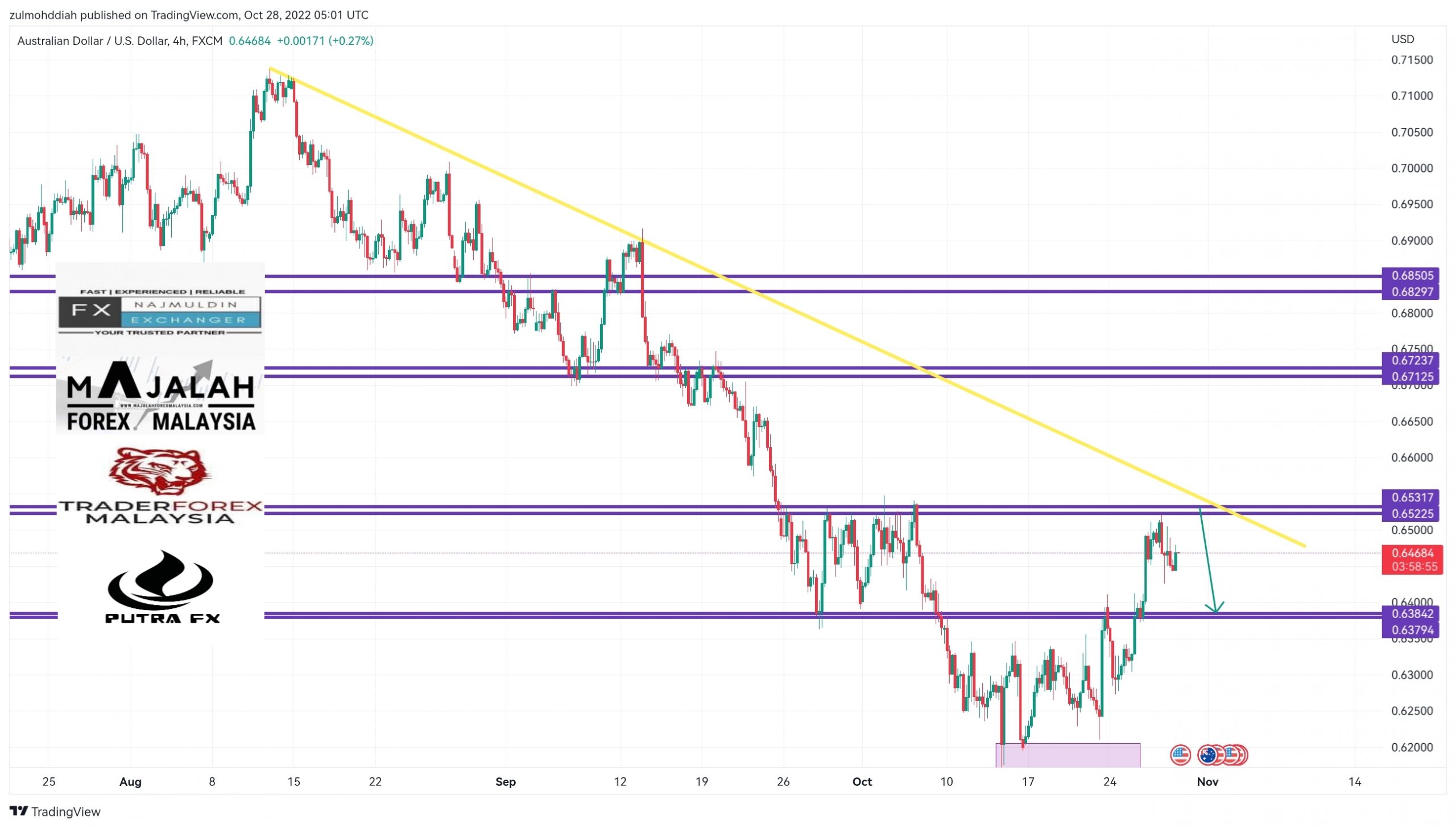 AudUsd di Timeframe H4. Forecast: Secara keseluruhannya kedudukan harga ketika ini masih lagi dalam kedudukan Downtrend. Ketika ini harga telah…