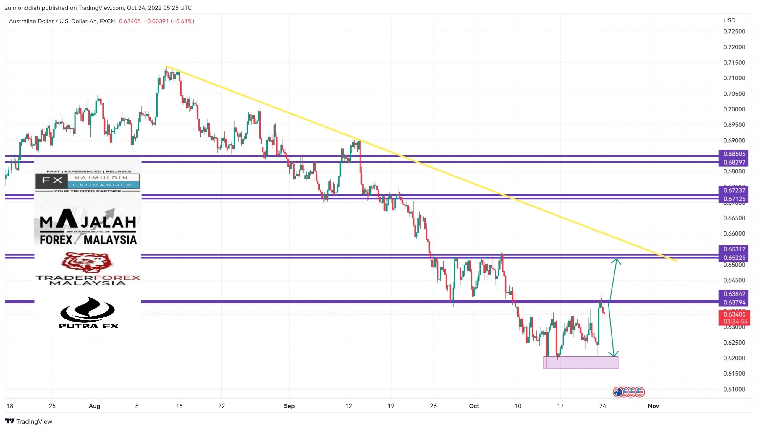 AudUsd di Timeframe H4. Forecast: Harga ketika ini masih lagi dalam kedudukan Downtrend secara keseluruhannya. Ketika ini harga masih lagi…