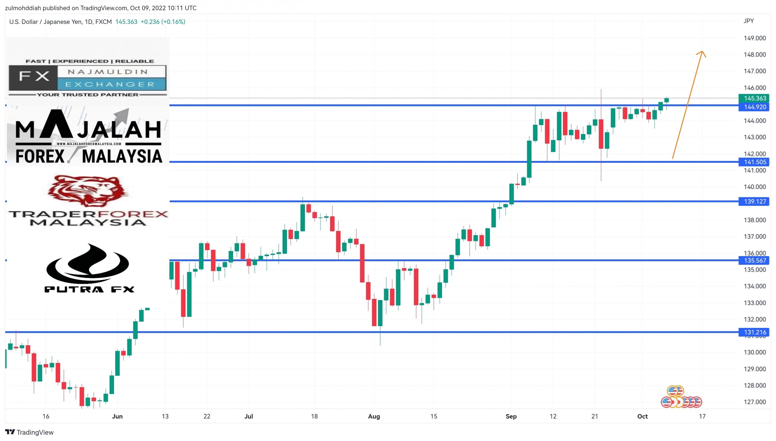 UsdJpy di Timeframe Daily (D1). Forecast: Secara keseluruhannya kedudukan harga masih lagi dalam kedudukan Uptrend. Pada minggu lepas harga masih…