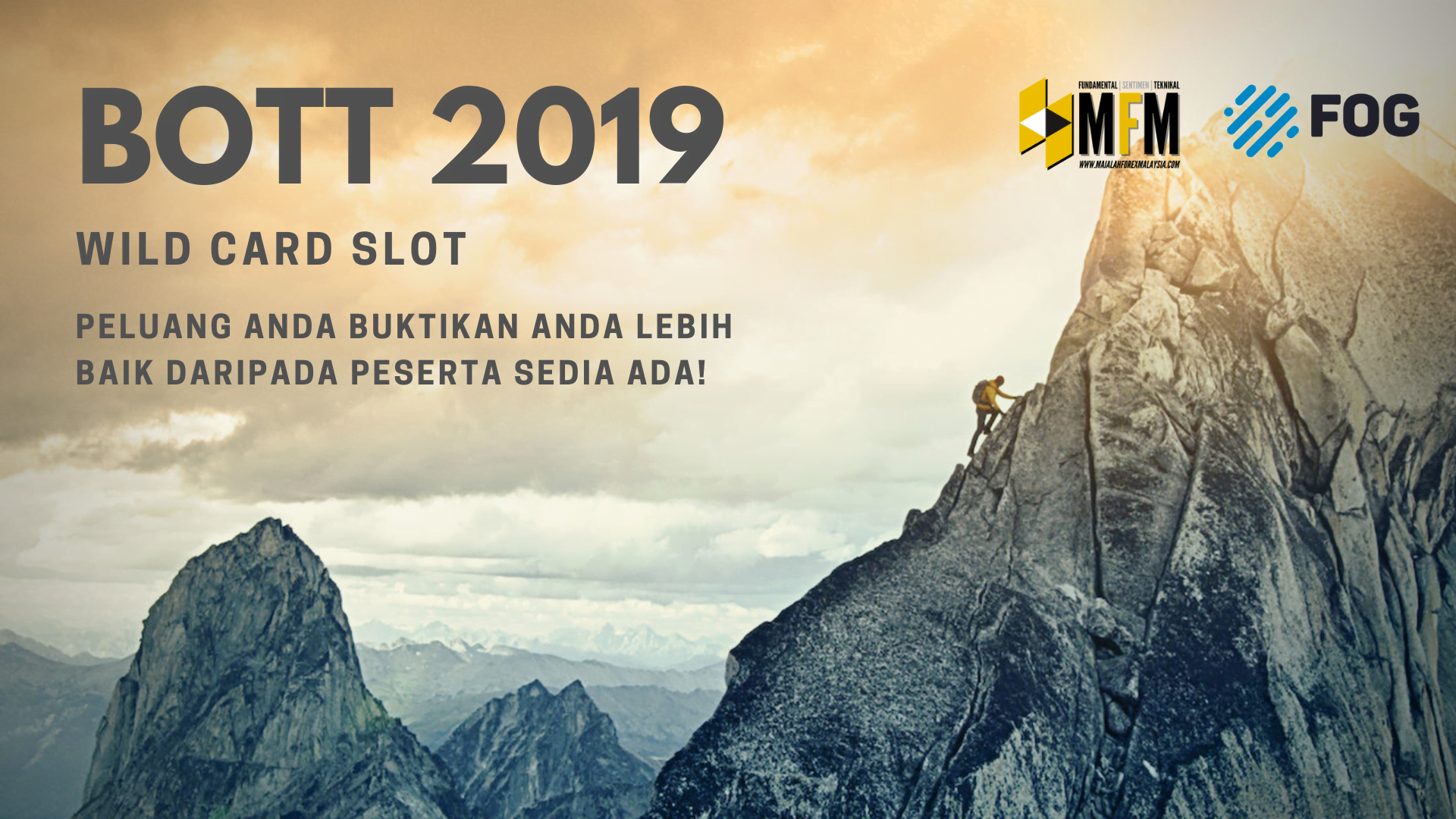 SLOT “WILD CARD” BOTT 2019. Gagal untuk menjadi 16 peserta BOTT 2019?. Gagal untuk mendaftar BOTT 2019 sebelum ini?. Masih…