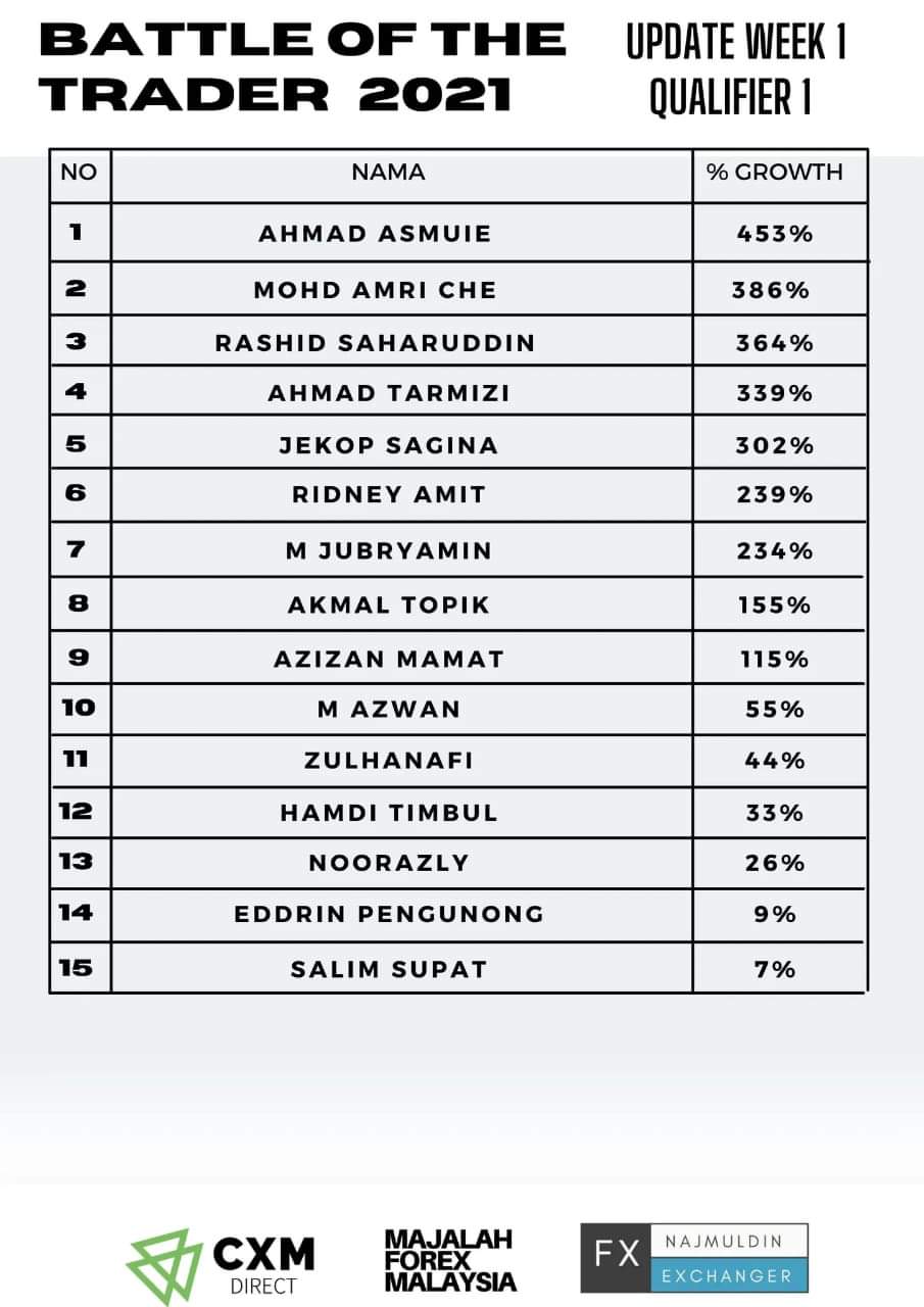 BOTT2021:KEDUDUKAN MINGGU PERTAMA SARINGAN PERTAMA BATTLE OF THE TRADER 2021