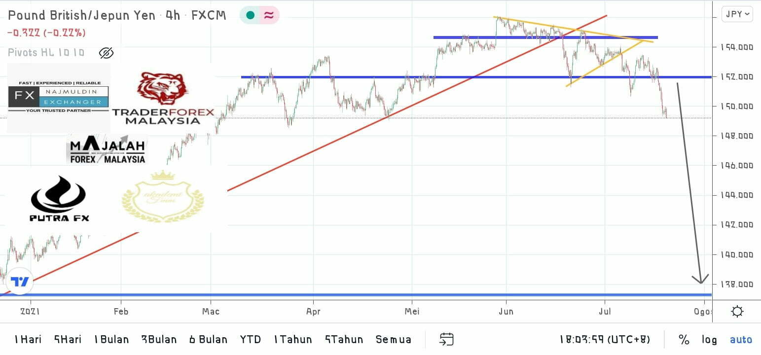 GbpJpy di TimeFrame H4. Trend semasa harga masih dalam kedudukan Downtrend di mana asal nya harga break dan close di…