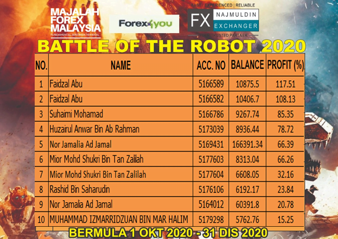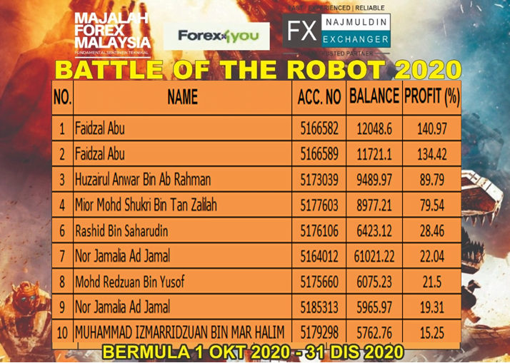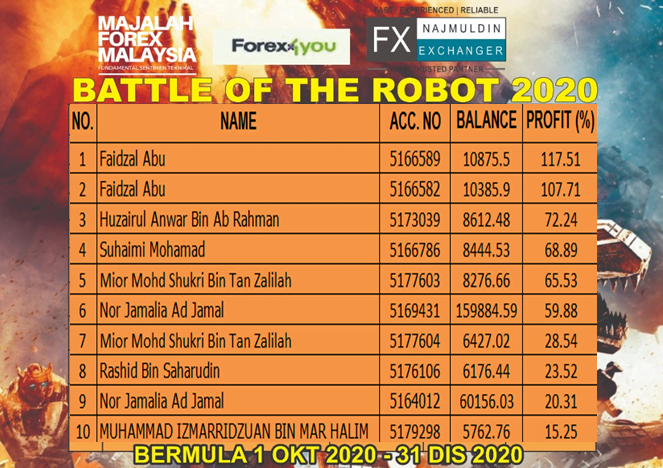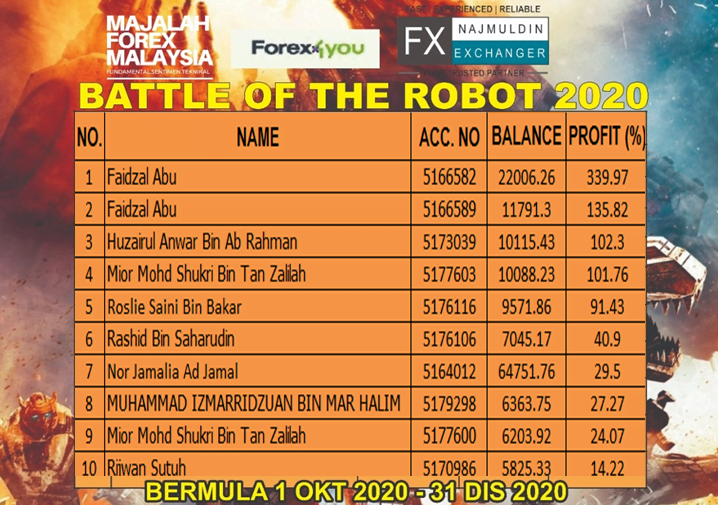 Battle of The Robot 2020 dikuasakan oleh Najmuldin Exchanger & Forex4You!. #BOTR2020 memasuki minggu ke tiga pertandingan. Minggu pertama penuh dengan acara promosi…