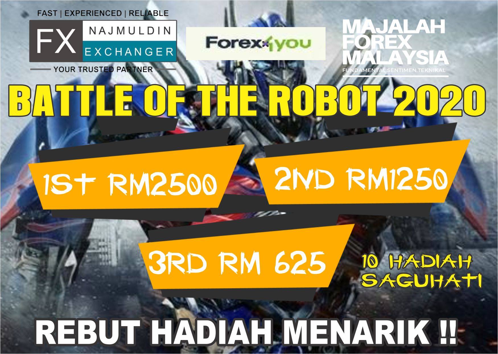 Battle of The Robot 2020 #BOTR2020 Dikuasakan oleh Najmuldin Exchanger & Forex4You ! Hadiah Keseluruhan #BOTR Telah dimuktamadkan! Alhamdulillah keputusan…
