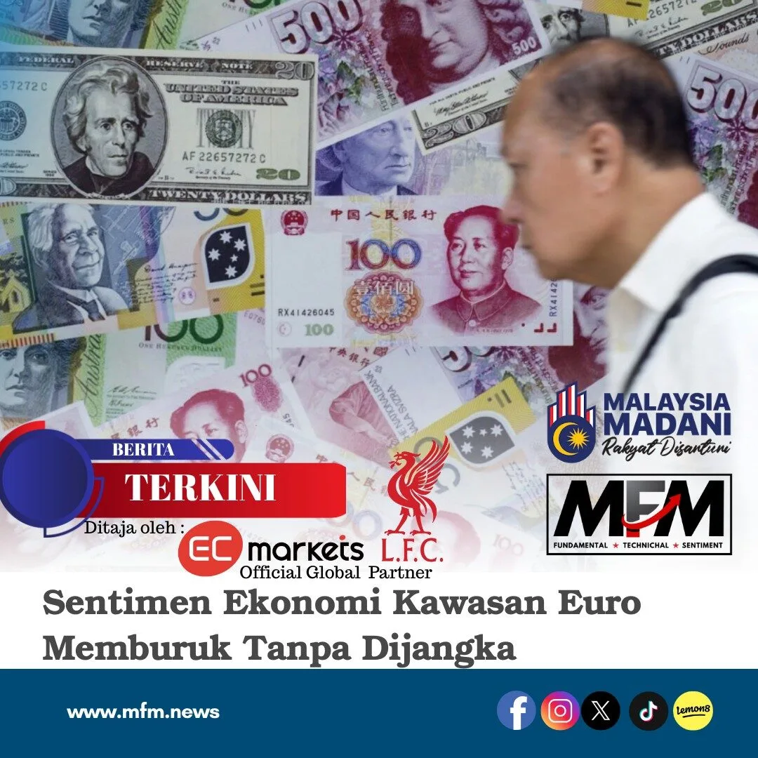 Penunjuk Sentimen Ekonomi (ESI) di Kawasan Euro turun 0.5 mata kepada 95.2 pada Ogos 2025, di bawah jangkaan pasaran 96.
