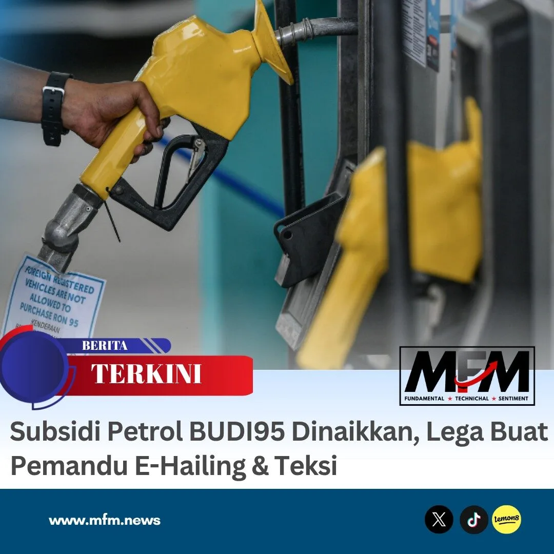 Kerajaan Malaysia umum berita gembira buat golongan pemandu e-hailing dan teksi apabila subsidi petrol BUDI95 dinaikkan daripada 600 liter kepada 800 liter sebulan. Langkah ini diumumkan oleh Kementerian Kewangan (MOF) sebagai sebahagian usaha mengimbangi peningkatan kos sara hidup dan operasi kenderaan.