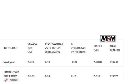 Yuan China meningkat pada hari Isnin ke paras tertinggi berbanding dolar sejak…