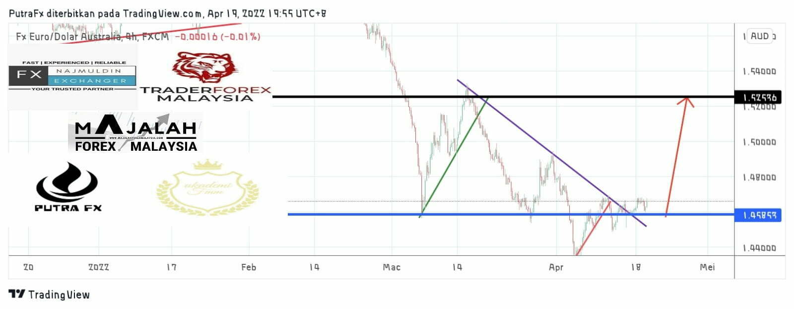 EurAud di TimeFrame H4. • Harga asal nya dalam kedudukan Downtrend. •…