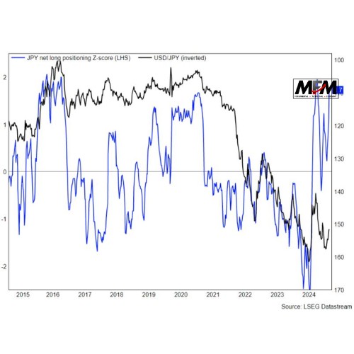 Seperti yang sedia ada, skor z 10 tahun menunjukkan belian bersih adalah yang tertinggi sejak September pada 1.7. Mengimbas kembali, angka sekitar 1.6 cenderung bertepatan dengan puncak jangka pendek dalam yen.