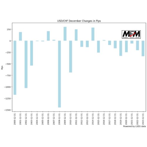 Franc Switzerland boleh melihat permintaan kukuh pada bulan Disember, seperti biasa. USD/CHF telah jatuh pada 17 pada 24 Disember yang lalu, terutamanya penurunan Disember 2008 sebanyak 12%, mengikut harga EBS.