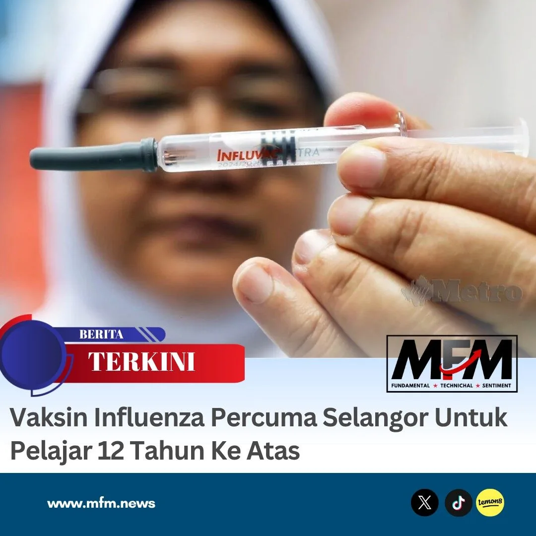 Kerajaan Negeri Selangor mengumumkan program vaksin influenza percuma khas untuk pelajar berumur 12 tahun ke atas, susulan peningkatan kes penyakit tersebut sejak beberapa minggu kebelakangan ini. Langkah ini diambil bagi melindungi pelajar menjelang musim hujan yang sering dikaitkan dengan peningkatan jangkitan saluran pernafasan.